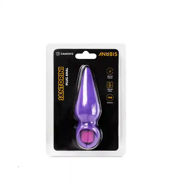 Vibrador Anal tipo Plug Un plug con una sorpresa en su interior, ya que mientras disfruta de una deliciosa estimulación anal recibirá vibraciones que lo harán vivir un momento íntimo extraordinario. Con este plug de silicona podrá experimentar la pasión a solas o en pareja durante un juego previo y de seguro que por su llamativo color morado lo hará ver sensual y versátil. Santorini tiene base en forma de anillo para una sencilla y cómoda extracción. Caracteristicas del Santorini Material Silicona TPR suave Medidas Longitud total 10.4 cm Longitud insertable 7.2 cm Diámetro 3.2 cm Peso 27 g Modos de vibración 7 modos de vibración Pilas 3 Pilas LR 44 (Incluidas) Recomendaciones de uso: Se recomienda usar lubricantes a base de agua, anales o dilatadores para mayor comodidad No se recomienda usar lubricantes a base de silicona, porque podrían sufrir daños irreversibles Resistente a salpicaduras, no sumergible Limpieza Antes de usar el juguete por primera vez, y después de cada uso, este debe ser limpiado para reducir el riesgo de infecciones, mantener la higiene adecuada y evitar el deterioro rápido del juguete. Confidencialidad: Tus pedidos se envían en una caja o sobre totalmente sellado opaco sin ningún tipo de marcas externas. Para nosotros es muy importante tu privacidad.