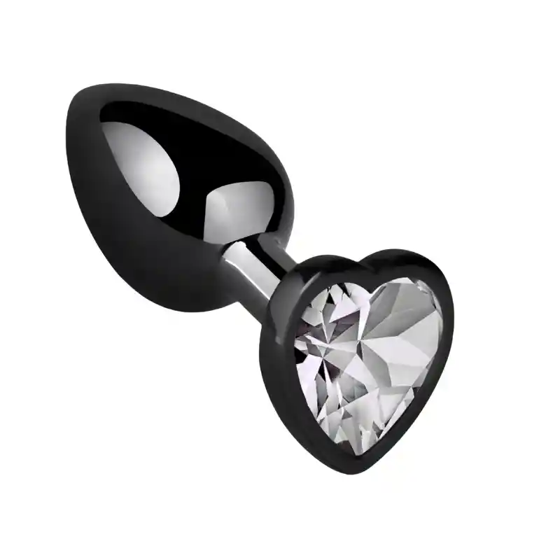 Plug Anal Talla M Negro Metálico Joya Corazón Clear Transparente