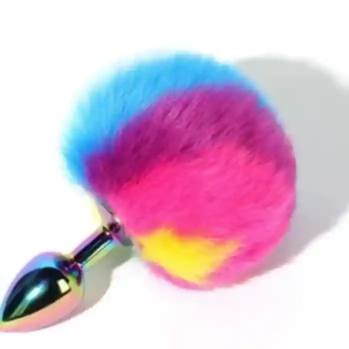 • Plug anal metálico tornasol con cola de conejo, color arcoíris, perfecto para un juego de roles y fetichismo. Material: Metálico • Material cola: Sintético • Insertable: 4cm • Diámetro: 2,5 cm • Color cola: Arcoíris