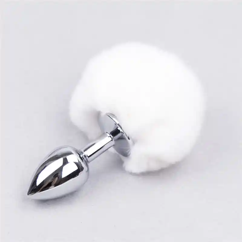 Plug anal con cola de conejo para fantasías Plug de acero inoxidable Plug Talla S