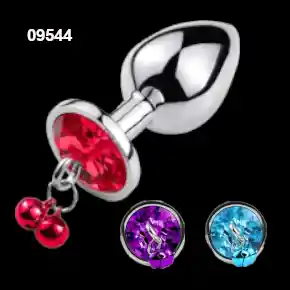 tapón anal de Acero, base de gema de imitación brillante y adorno de campana doble, Talla M.