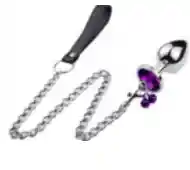 Todos nuestros productos van totalmente discretos y anónimos. Embalados en caja o bolsa de seguridad sellada y sin transparencia. Recomendamos el uso de este producto con alguno de los lubricantes anales o de agua de nuestra tienda SEXCANDALO. Características: El juguete incluye un plug anal de acero inoxidable. Tamaño: 7cm de largo x 3cm de ancho. Junto con un collar para halar del plug mientras esté dentro de tu pareja como un total juego de sadomasoquismo y humillación