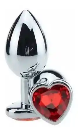 Plug anal metalico en forma de corazon tamaño mediano, ideal para principiantes y uso diario, incluye joya decorativa en, rojo