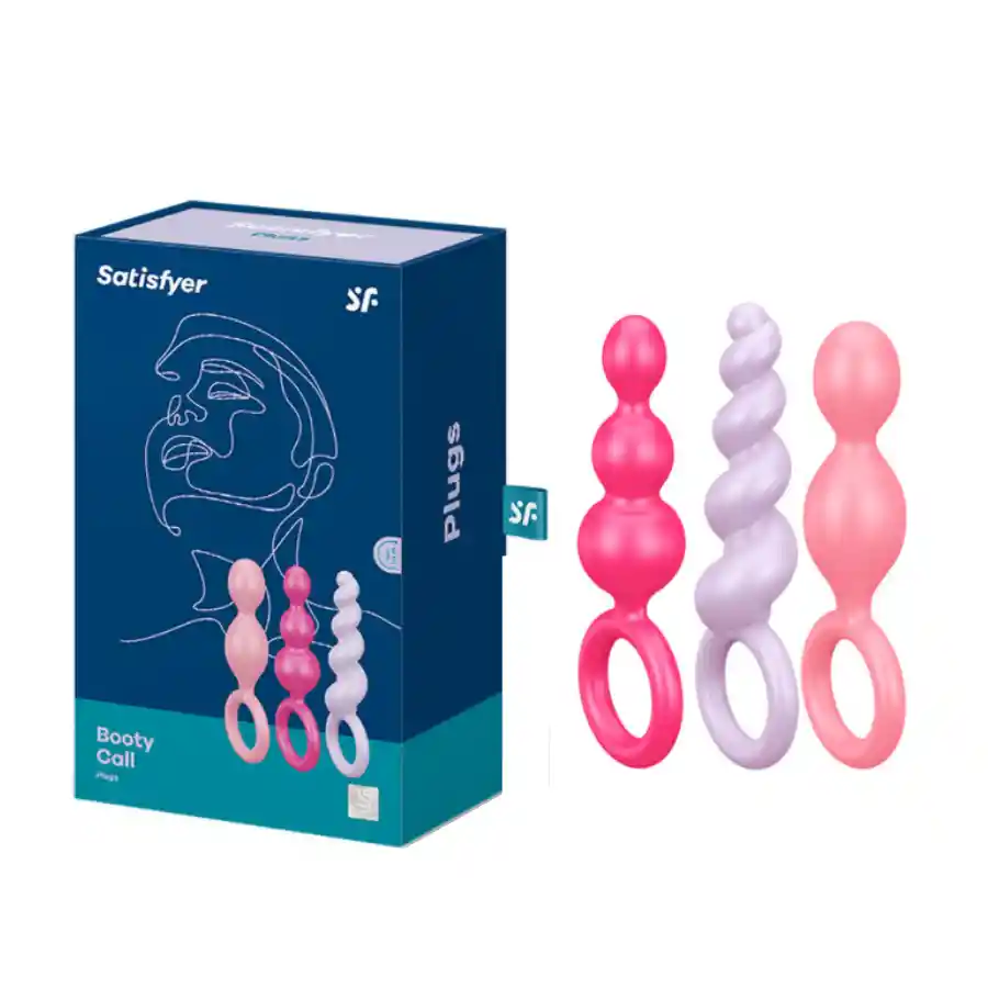 El Booty Call de Satisfyer es el juego perfecto para quienes están iniciándose en el sexo anal. Incluye tres Plug anales con formas diferentes: espiral enrollada, cono estrecho y estructura esférica de tres elementos, cada uno con un diámetro ascendente que permite una expansión suave y controlada del ano. La base ancha previene la inserción completa, y la correa de recuperación facilita la extracción. Ideal para entrenamiento anal y explorar nuevas sensaciones. Características: • Plug anal: espiral enrollada, cono estrecho y estructura esférica de tres elementos • Medidas: Espiral 13,5 cm Cono 13,5 cm Estructura Esférica 14,0 cm • Material: Silicona de grado médico. • Color: Fucsia, Lila, Rosado • Ancho de las bolas (de grande a pequeña): 4 cm, 3.5 cm, 3 cm, 2.5 cm, 2 cm. • Práctica correa de seguridad: Para aventuras sensuales sin preocupaciones. Garantía: 3 meses Limpieza y cuidado: Usa con lubricante íntimo anal para una experiencia más placentera. Es ideal que el uso de este juguete sea con lubricantes a base de agua. No se deben usar lubricantes de silicona. Limpiar antes y después de cada uso con un limpiador de juguetes y un paño suave que no desprenda material. Confidencialidad: Somos 100% discretos, tu envío llegará en una caja negra completamente envuelta.