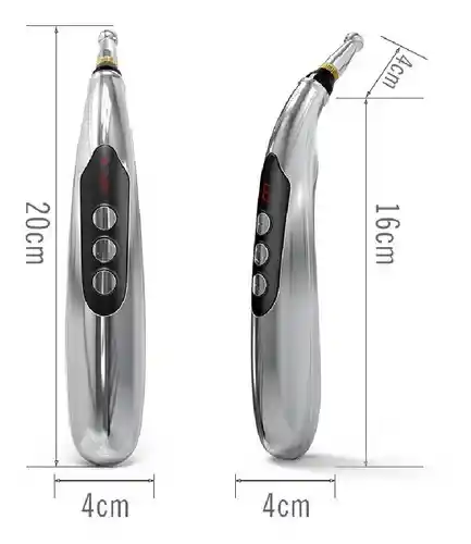 Función: alivio del dolor corporal, estimulador de acupuntura láser meridiano Este es un bolígrafo electrónico de acupuntura para terapia del dolor. Este bolígrafo de acupuntura Proporciona estimulación de acupuntura limpia e indolora sin aguja (sin agujas) para una terapia segura del dolor en el hogar. Características: La atención de la salud de las funciones: La sonda estimula la piel, tendrá una sensación de deslizamiento y vibración. Coloque la máquina en el punto correspondiente, entonces la sensación será más fuerte. Una especie de sensación relajada y cómoda le llegará después de usar la máquina. El bolígrafo estimula electrofisiológicamente nuestro cuerpo, a través de la red del eje, directamente en los tejidos del cuerpo, los órganos, regula el campo bioeléctrico, activa los radicales y el ajuste de las células biológicas,. Regula básicamente la absorción, conducción, equilibrio, metabolismo, funciones inmunes y cuidado de la salud del cuerpo. Meridian funciones: Las articulaciones juegan un papel importante como cruce del cuerpo humano, son los lugares donde los residuos fisiológicos como el frío, húmedo, la sal, el calor, las cosas malas tóxicas bloquean. Esa también es la razón por la cual el cuerpo humano obtiene fácilmente artralgia. Al usar el lápiz de acupuntura en las articulaciones, los residuos fisiológicos se pueden limpiar, entonces puede sentirse fresco y relajarse. Belleza efecto: El bolígrafo para meridianos de energía también puede hacer la cara como lifting facial, quitar la bolsa, círculos oscuros y arrugas, haciendo un efecto inmediato en la cara. El bolígrafo también puede hacerlo siempre joven y saludable si lo sigue usando. (mejor con cosméticos profesionales) si no, puede usar solución salina normal o agua destilada en su lugar. Para un cuidado facial y ocular profesional, tendrá que combinar productos de belleza profesionales