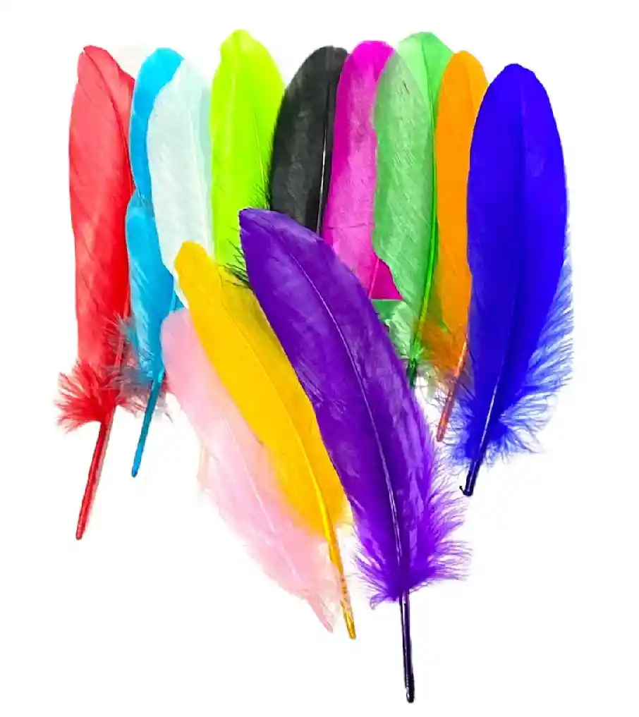 Plumas de colores paquete X 12 unidades con medidas entre 16 y 19 CM