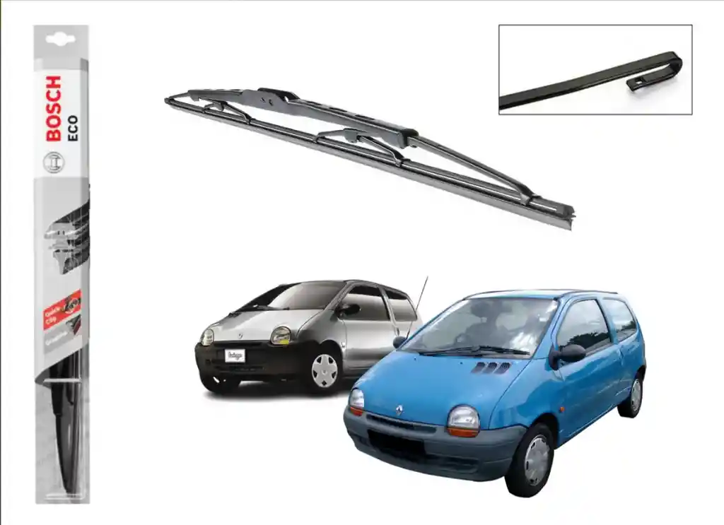 Somos Comercializadora JC Lujos y accesorios para su auto. PLUMILLA METALICA BOSCH ECO 26" PARA RENAULT TWINGO. - Estructura unica que asegura un barrido optimo - Diseño metalico. - Sencilla Instalacion gracias a sus adaptadores originales. El precio incluye 1 plumillas BOSCH ECO (26") con 2 pines intercambiables de acuerdo a la necesidad de su vehiculo Las plumillas son originales, contramarcadas BOSCH y vienen en empaque sellado por unidad. VER INSTRUCCIONES AL RESPALDO DEL EMPAQUE PARA FACILITAR INSTALACION. Sin garantía