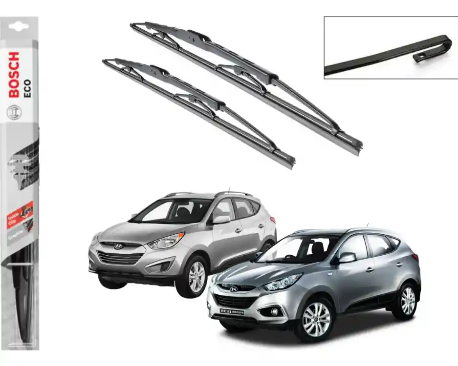 Plumillas Eco Bosch Metálica Hyundai ix-35 ix35 - Estructura unica que asegura un barrido optimo - Diseño metalico. - Sencilla Instalacion gracias a sus adaptadores originales. El precio incluye 2 plumillas BOSCH ECO (24" Y 16") de acuerdo a la necesidad de su vehículo. Las plumillas son originales, contramarcadas BOSCH y vienen en empaque sellado por unidad. VER INSTRUCCIONES AL RESPALDO DEL EMPAQUE PARA FACILITAR INSTALACION. Garantía del vendedor: 30 días