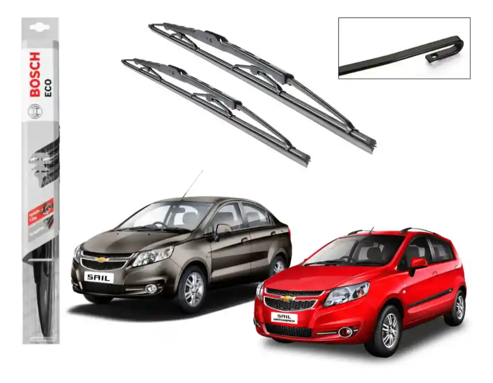 Plumillas Bosch Eco metálicas para Chevrolet Sail 18" y 16". Barrido eficiente y fácil instalación. Estructura metálica reforzada que garantiza un barrido óptimo y duradero. Diseño aerodinámico que mejora el desempeño y reduce el ruido al conducir. Instalación sencilla gracias a sus adaptadores originales incluidos. El precio incluye 2 plumillas Bosch Eco metálicas (18" y 16") compatibles con todos los modelos Chevrolet Sail. Las plumillas son originales, contramarcadas Bosch y vienen en empaque sellado por unidad. Ver instrucciones al reverso del empaque para facilitar la instalación. Garantía de fábrica: 1 mes
