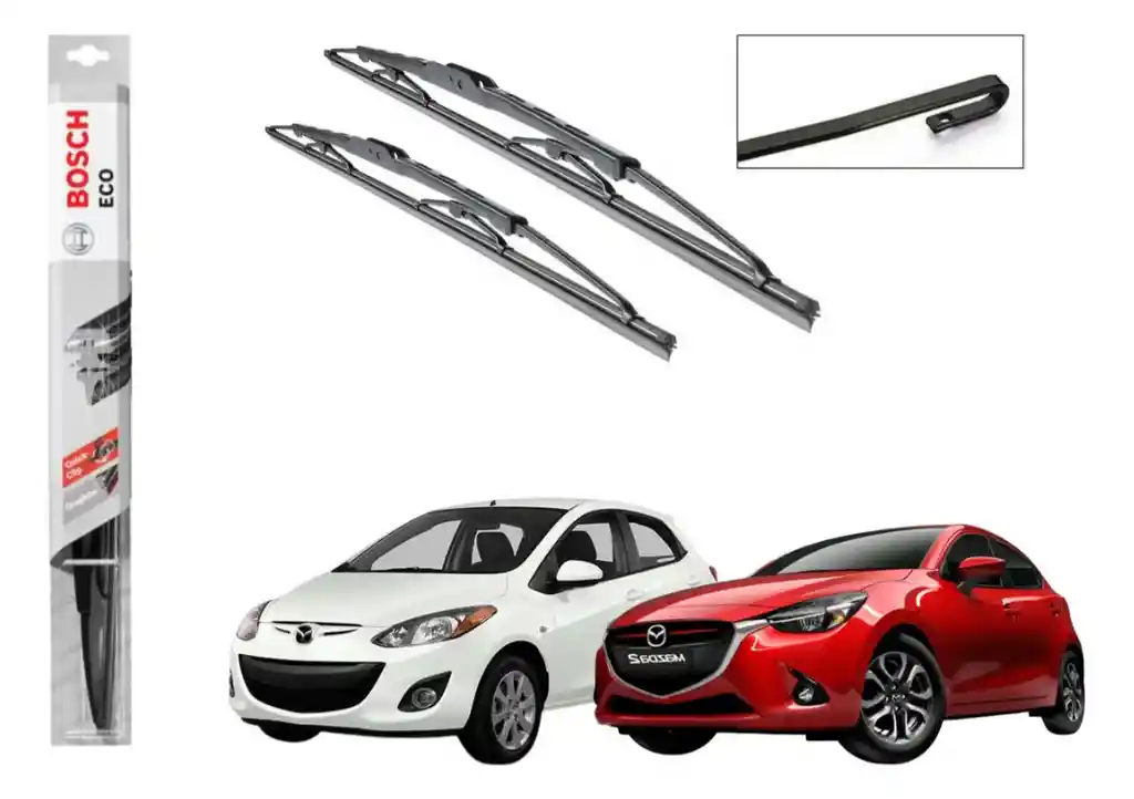 Plumillas Bosch Eco metálicas para Mazda 2 2014 - 2019 22" y 16". Barrido eficiente y fácil instalación. Estructura metálica reforzada que garantiza un barrido óptimo y duradero. Diseño aerodinámico que mejora el desempeño y reduce el ruido al conducir. Instalación sencilla gracias a sus adaptadores originales incluidos. El precio incluye 2 plumillas Bosch Eco metálicas (22" y 16") compatibles con todos los modelos Mazda 2. Las plumillas son originales, contramarcadas Bosch y vienen en empaque sellado por unidad. Ver instrucciones al reverso del empaque para facilitar la instalación. Garantía del vendedor: 1 meses