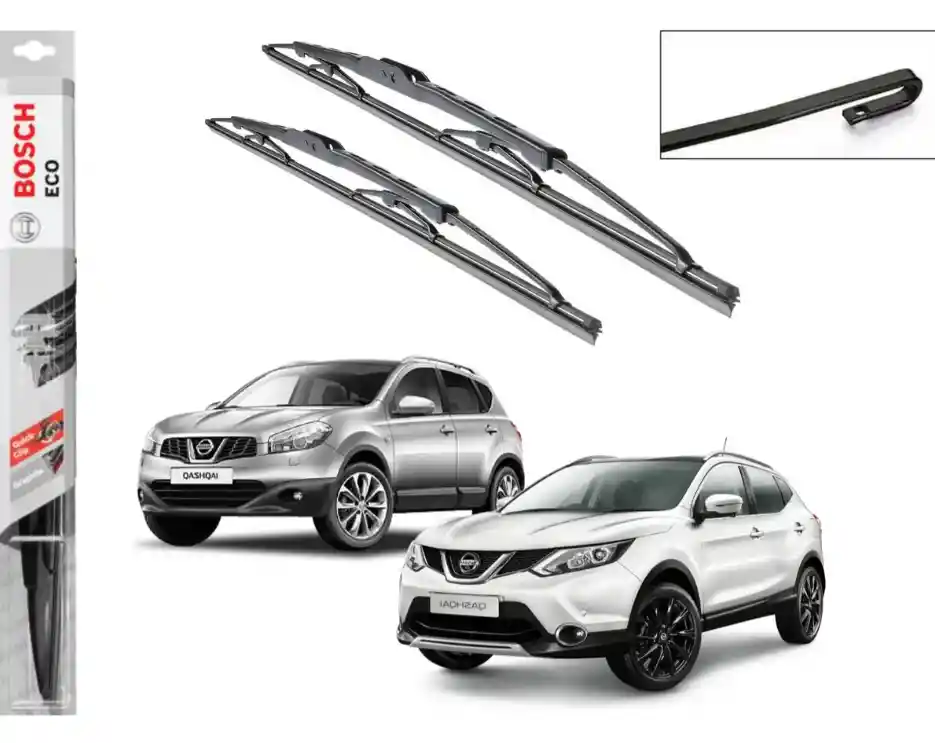 Par Plumillas Bosch Metalica Nissan Qasqai 2015 - 2021 - Estructura unica que asegura un barrido optimo - Diseño metalico. - Sencilla Instalacion gracias a sus adaptadores originales. El precio incluye 2 plumillas BOSCH ECO (26" Y 16") con 2 pines intercambiables de acuerdo a la necesidad de su vehiculo Las plumillas son originales, contramarcadas BOSCH y vienen en empaque sellado por unidad. VER INSTRUCCIONES AL RESPALDO DEL EMPAQUE PARA FACILITAR INSTALACION. SOMOS COMERCIALIZADORA AJC, LLEVAMOS MAS DE 5 AÑOS VENDIENDO EN MERCADOLIBRE, PUEDES COMPRAR CON TOTAL TRANQUILIDAD RECUERDA QUE ESTAMOS PARA SERVIRTE.