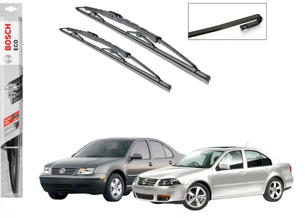 Somos Comercializadora AJC Lujos y accesorios para su auto. PLUMILLA METALICA BOSCH ECO 20" Y 20" PARA Volkswagen Jetta MK4.5. Volkswagen Jetta MK4.5 : 1999-2008 - Estructura unica que asegura un barrido optimo - Diseño metalico. - Sencilla Instalacion gracias a sus adaptadores originales. El precio incluye 2 plumillas BOSCH ECO (20" Y 20") con 2 pines intercambiables de acuerdo a la necesidad de su vehiculo Las plumillas son originales, contramarcadas BOSCH y vienen en empaque sellado por unidad. VER INSTRUCCIONES AL RESPALDO DEL EMPAQUE PARA FACILITAR INSTALACION. Garantía del vendedor: 1 mes