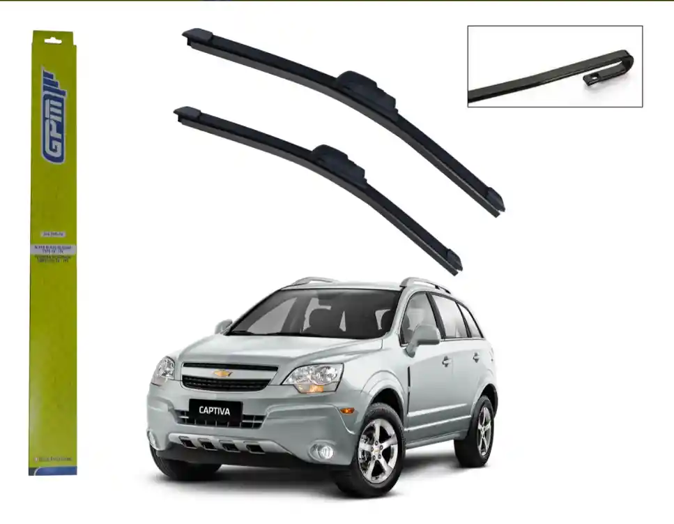 Plumillas GPM siliconadas aerodinámicas para Chevrolet Captiva hasta 2017. Medidas 24" y 16". Excelente visibilidad, durabilidad y fácil instalación. Goma siliconada que ofrece un barrido efectivo y suave Diseño aerodinámico para mejor desempeño a velocidad Instalación rápida con adaptador original incluido El precio incluye 2 plumillas GPM siliconadas (24" y 16") compatibles con Chevrolet Captiva hasta modelo 2017. Las plumillas son originales, contramarcadas GPM y vienen en empaque sellado por unidad. Ver instrucciones al reverso del empaque para facilitar la instalación. Garantía del vendedor: 30 días