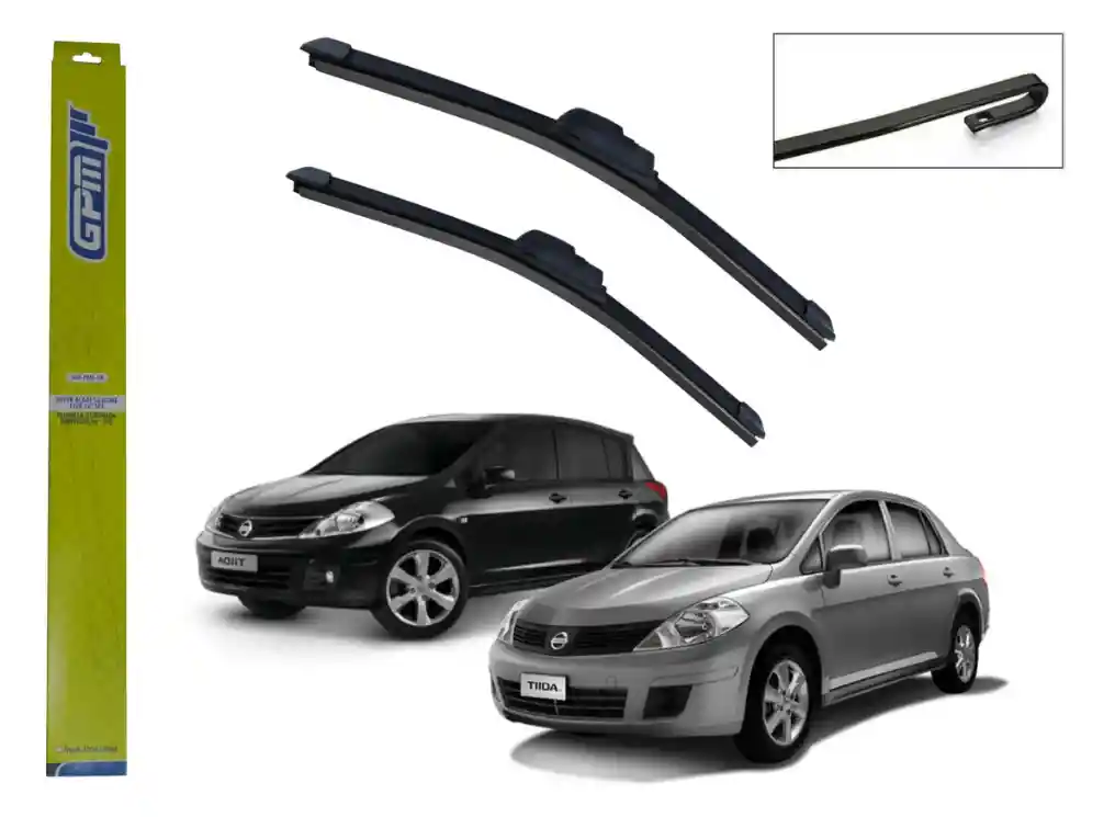 Par Plumillas Siliconada Metalica Nissan Tiida 2006 - 2016 - Estructura única que asegura un barrido optimo. - Diseño metálico. - Sencilla Instalación. El precio incluye 2 plumillas Silicona (24" Y 14") VER INSTRUCCIONES AL RESPALDO DEL EMPAQUE PARA FACILITAR INSTALACION. Garantía del vendedor: 1 meses