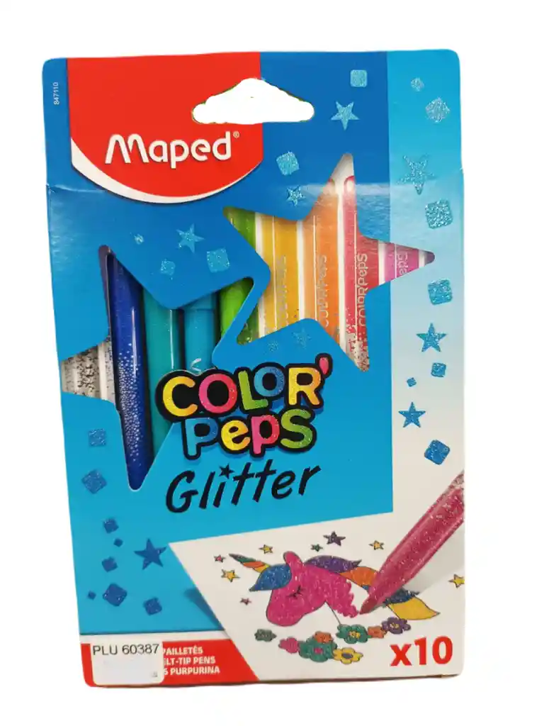 Ponele brillo a tus creaciones con los increíbles marcadores Maped Glitter!. *Perfectos para destellar tu creatividad *Ideales para dar un efecto Glitter a tus manualidades, decorar tarjetas, personalizar tus trabajos *Punta de fibra bloqueada que no se hunde