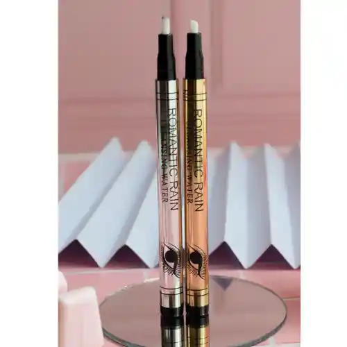 Lápiz Limpiador/Corrector: "Lápiz Corrector de Maquillaje" de Romantic Rain diseñado para corregir errores específicos, como manchas de pestañina o delineados mal hechos. Es un lápiz con una punta precisa que se pasa sobre el error para limpiarlo.