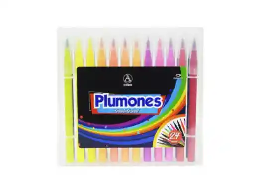 "Caja de Plumones Punta pincel Artisan x 24, diferentes gamas de colores para pintar, dibujar y realizar letras con los nuevos plumones, caja plástica trasparente con soporte para cada marcador, Vive un mundo de colores! Acuarelables Punta Pincel 24 Unidades"