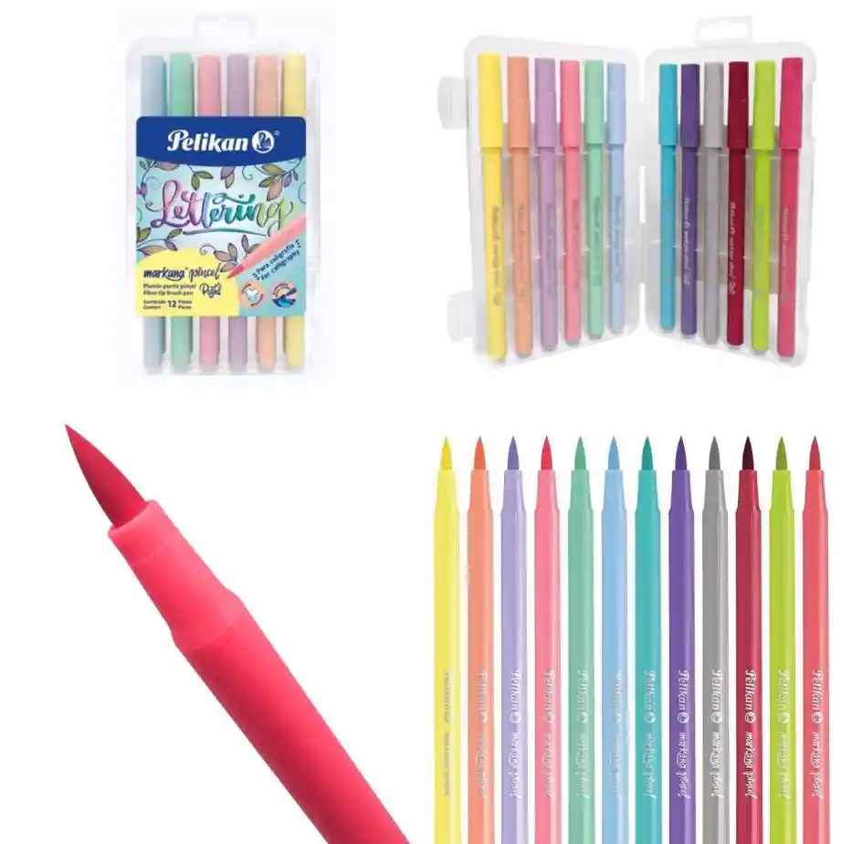 PLUMONES LETTERING MARKANA PUNTA PINCEL PASTEL X12 PIEZAS