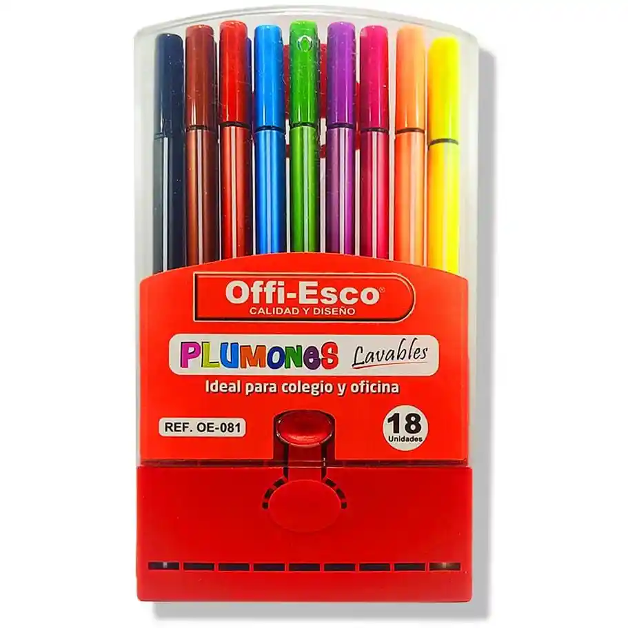Ideal para colegio y oficina., 18 Plumones en estuche de lujo., Gran contenido de tinta., Tapa antiasfixia., Triangulares., No tóxico. TAMBIEN PUEDES HACER TUS COMPRAS POR MAYOR CONTACTANOS