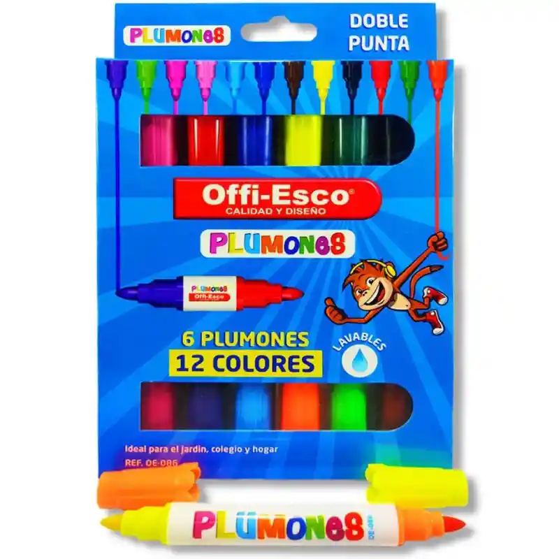 plumones offiesco jumbo doble punta x 6 unidades , 6 marcadores 12 colores