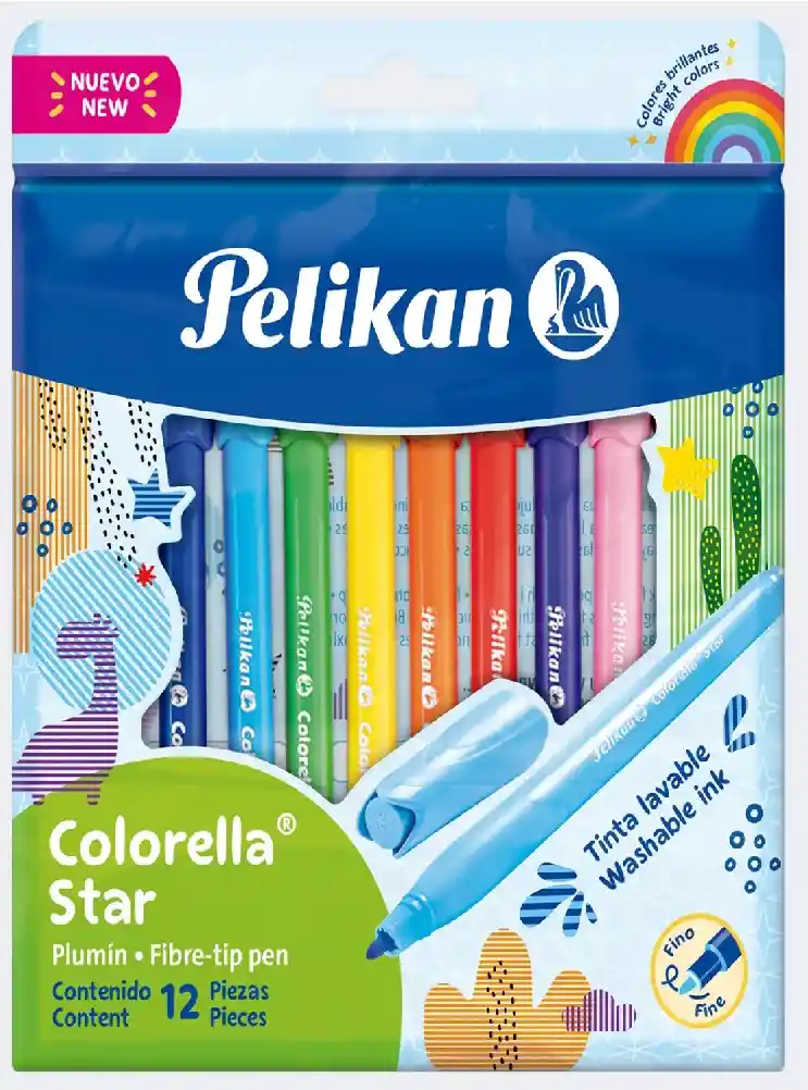 Plumones Pelikan Colorella Star Caja por 12 Unidades. Su Punta Redonda Permite que el Trazo de Linea sea Mayor a 0,8mm, Plumon de Alto Rendimiento. Tapa Ventilada. EAN 7703064226755