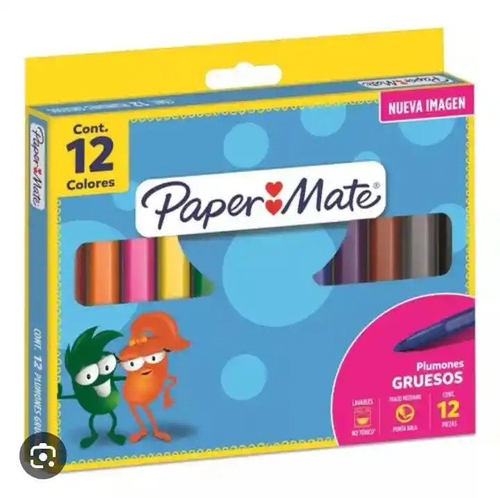 PLUMONES MARCADORES UNIPUNTA GRUESOS - PUNTA BALA - LAVABLES X 12