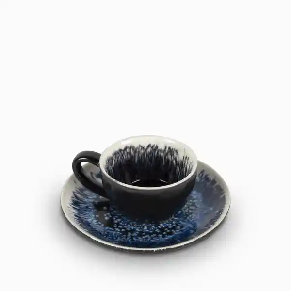 La Técnica de Esmaltado de Esta Vajilla Crea Patrones Únicos de Tonos Luminosos y Variables Que Van Delo Claro a lo Oscuro Haciendo Que Cada Pieza de Esta Vajilla Sea Sutilmente Única. Set de Taza y Plato Para Ofrecer Bebidas Calientes Luego de Cada Comida o Durante Las Onces. País de Origen: China. Importador: Distribuidora Matec S. A. S.