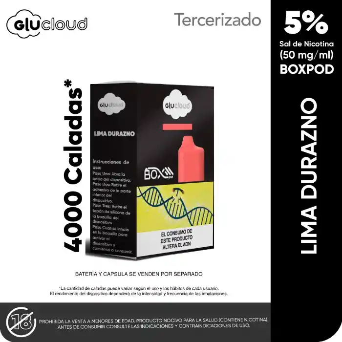 Especificaciones: -Capacidad de líquido 10 ml. -Contiene 5% de nicotina. -Hasta 4.000 caladas* (Aproximadamente) **Atención: Producto exclusivo para mayores de 18 años. Este producto no es libre de riesgo, en virtud de sus componentes es nocivo para la salud. Contiene nicotina, sustancia adictiva. manténgase fuera del alcance de los ninos. Consulte las indicaciones y contraindicaciones de uso.
