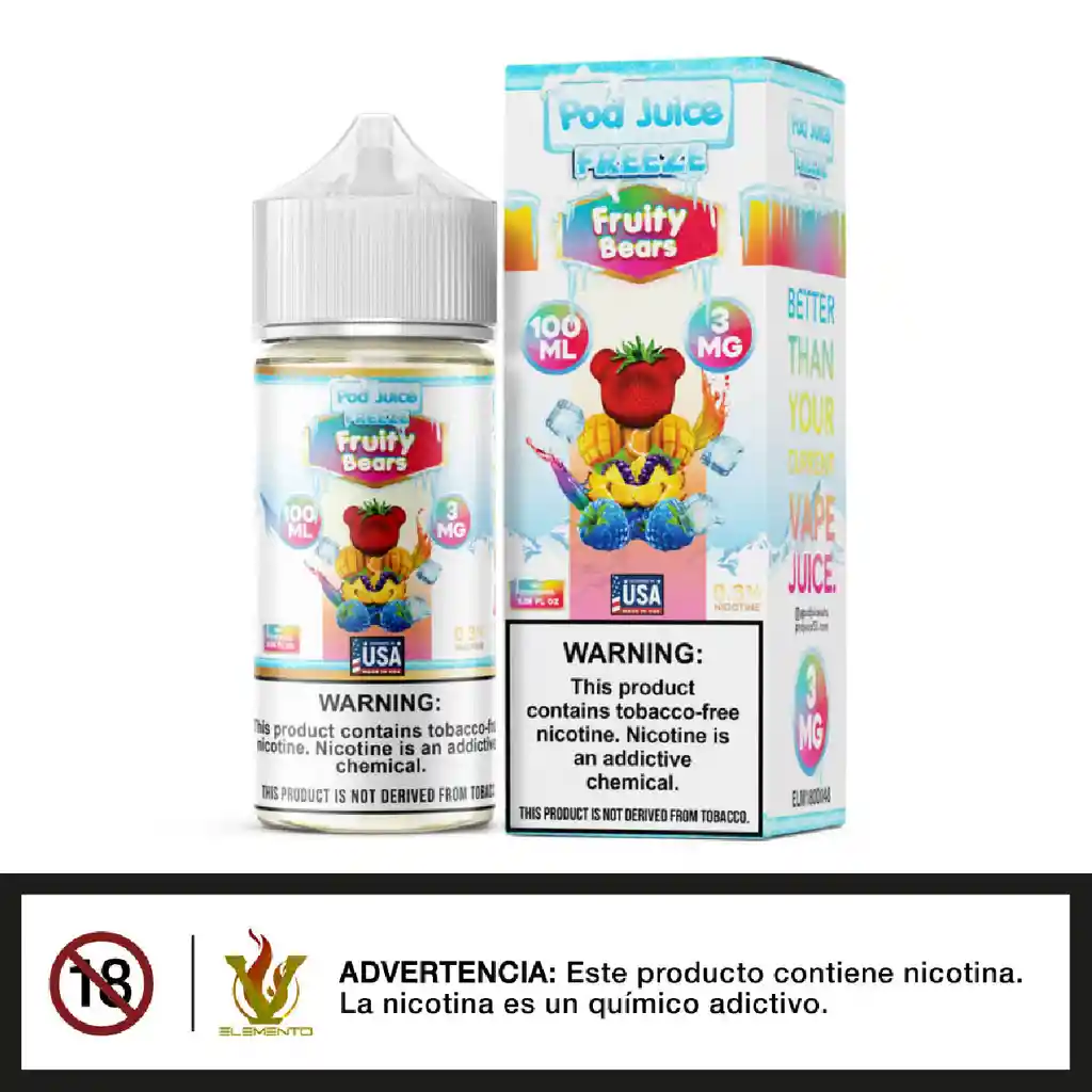 Fruity Bears Freeze de Pod Juice es una selección de ositos de goma con un toque de mentol para crear una estimulante sensación en tus papilas gustativas.