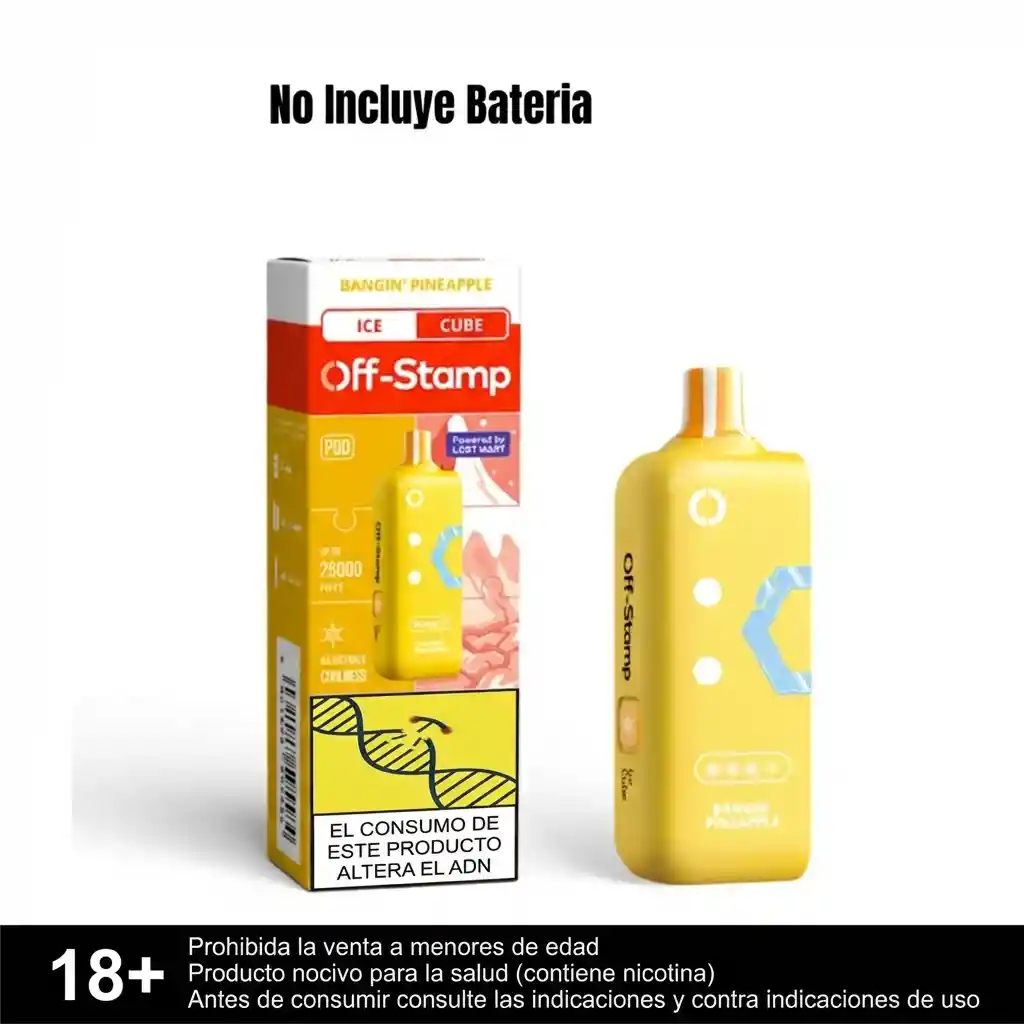 NO INCLUYE BATERIA, SABOR PIÑA ICE - Pod Off Stamp / Recarga para tu Bateria Off Stamp, 35.000 Puffs, tiene boton para graduar su intensidad de dulzura / mentolado.