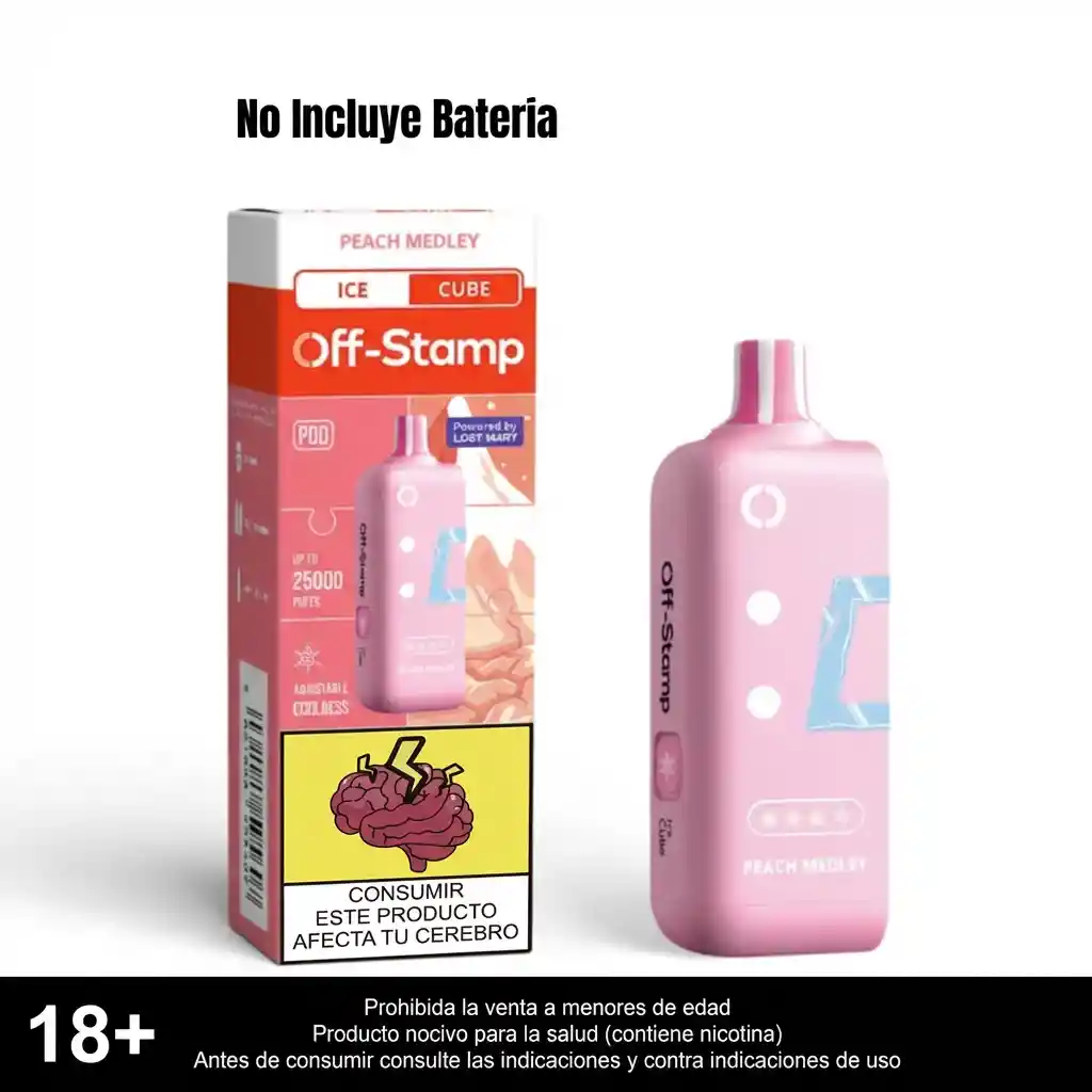 NO INCLUYE BATERIA, SABOR DURAZNO MENTOLADO - Pod Off Stamp / Recarga para tu Bateria Off Stamp, 35.000 Puffs, tiene boton para graduar su intensidad de dulzura / mentolado.
