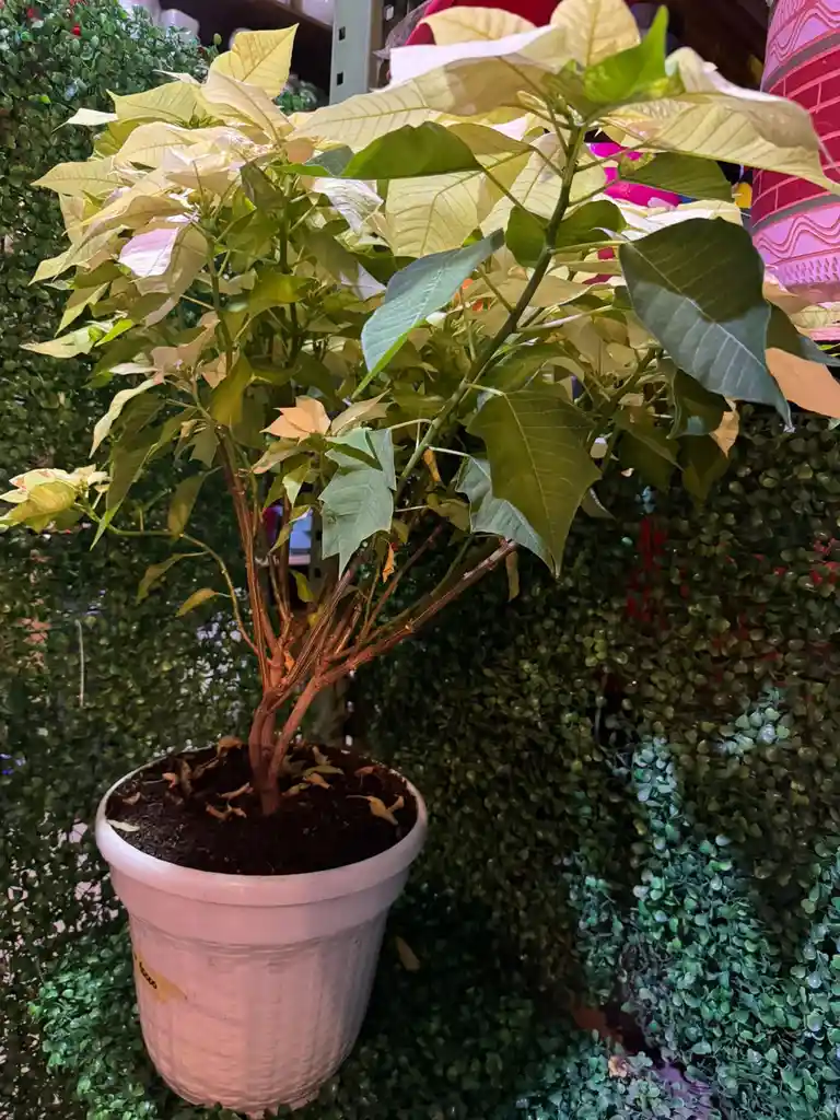 Esta poinsettia en tono crema marfil es una opción sofisticada y diferente, perfecta para quienes buscan decoración con estilo y armonía. Sus hojas claras aportan luz, frescura y un toque moderno a cualquier espacio.