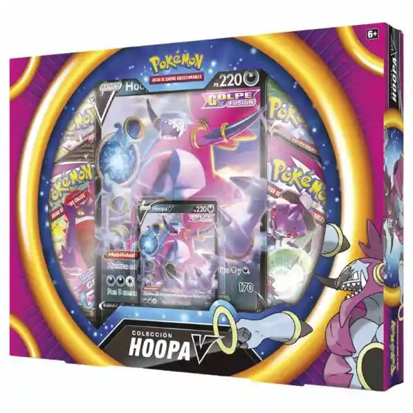 Desata un golpe fusión con Hoppa V, con sus poderes estará listo para hacer malabares con los anillos, conquistar otras dimensiones y con sus fuertes ataques e innumerables brazos listos para la batalla. Idioma: Español Contenido: 1 Carta holográfica Hoopa V - 1 Carta de gran tamaño Hoopa V - 4 Sobres Pokémon - 1 Carta de código para Pokémon On line
