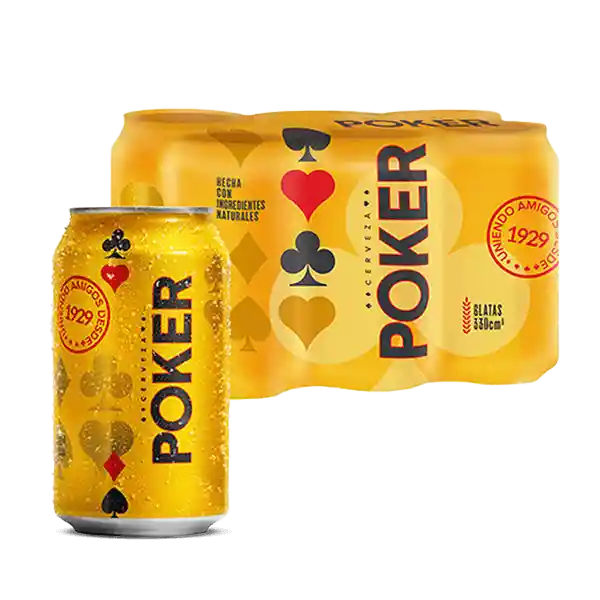 SIX PACK CERVEZA POKER LATA 330 ML