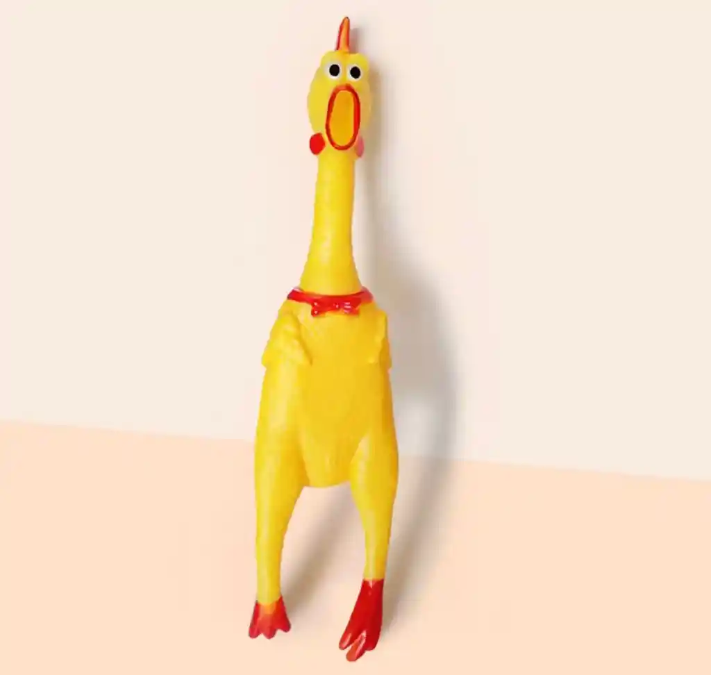 Juguete chillón, en forma de pollo, esmaltado para cualquier mascota.