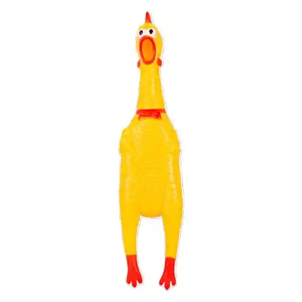 Juguete de goma o plástico de gran tamaño que hace ruido al ser apretado, imitando el sonido de un pollo gritando.