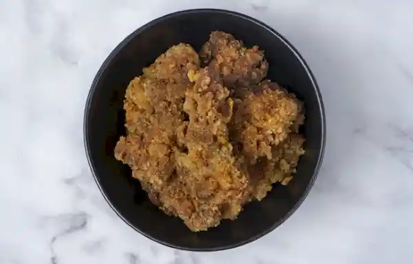 Trocitos de pollo apanados marinados en especias orientales limón y yogur.Cantidad 60g