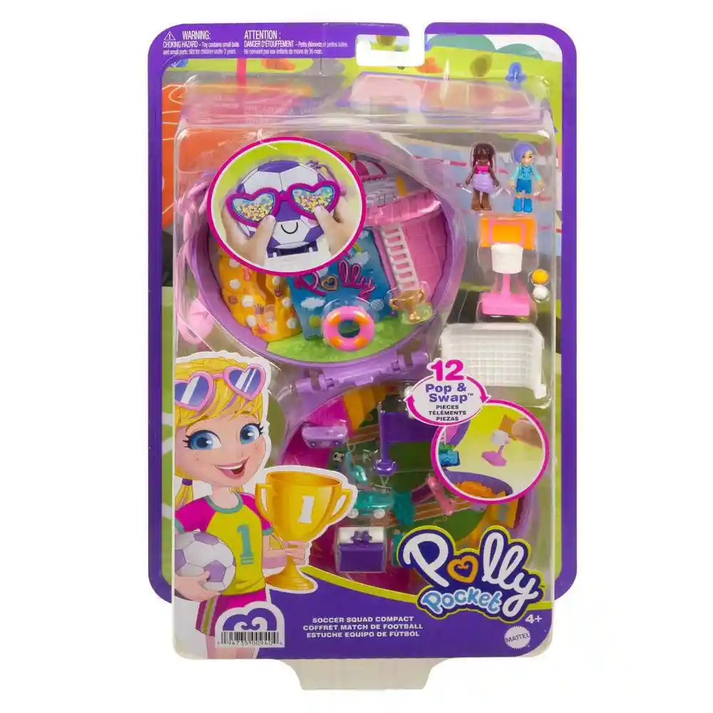 ¡Prepárate Para Tiny Sports Adventures Con Polly Pocket! Perfecto Para Jugar en Casa o Mientras Viaja Este Compacto de Soccer Squad Tiene un Diseño de Pelota de Fútbol Con Lindas Gafas de Sol en el Exterior Llenas de Brillo Tembloroso. Abre el Compacto Para Revelar Una Emocionante Aventura de Temática Deportiva Con 5 Características de Sorpresa y Deleite 12 Accesorios (Algunos Con Una Función de Clavija Pop & Swap) y 2 Micro Muñecas. Descubra y Juegue la Diversión de la Narración de Historias Pegando Una de Las Muñecas a la Pared de Escalada Doble la Piscina Para Dar Vueltas Dispare Aros de Baloncesto Mueva la Pelota de Voleibol de un Lado a Otro Sobre la Red y Abra la Nevera Para un Regalo. ¡Pega Piezas en Diferentes Áreas Del Compacto Para Infinitas Posibilidades de Juego! ¡El Compacto También Viene Con Una Correa de Pulsera Para Que Los Niños Puedan Llevarlo Sobre la Marcha Para Divertidas Aventuras de Polly Pocket en Cualquier Momento y en Cualquier Lugar! Los Colores y Las Decoraciones Pueden Variar. Es un Gran Regalo Para Mayores de 4 Años.