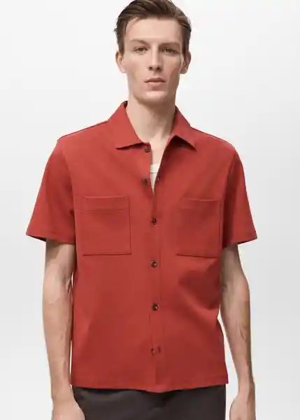 Bajo Recto Cierre Delantero Con Botones Cuello Camisero Dos Bolsillos de Parche en el Pecho el Modelo Mide 190 cm y Lleva Una Talla M Regular Fit Tejido Mezcla de Algodón - 87087893_70.