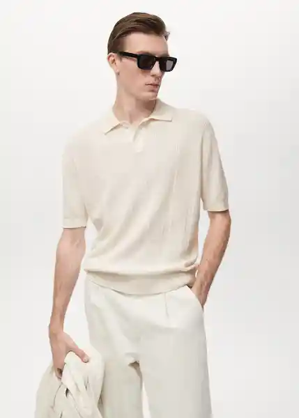 Cuello Polo Con Cierre de Botones Cuello Mangas y Bajo Acabados en Canalé el Color Beige es Exclusivo Online el Modelo Mide 190 cm y Lleva Una Talla M Manga Corta Regular Fit Tejido 100% Algodón - 87037900_05.