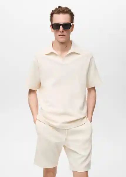 Bajo Recto Cuello Polo Sin Botones el Modelo Mide 190 cm y Lleva Una Talla M Manga Corta Relaxed Fit Tejido de Algodón Con Estructura - 87065924_05.