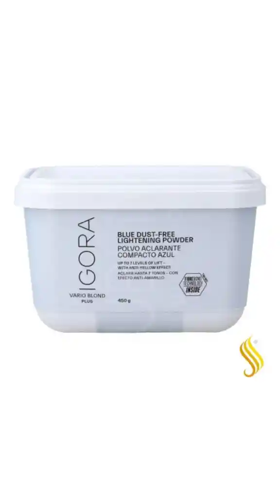 Schwarzkopf Igora Vario Blond Plus con la Tecnología Fibre Bond integrada de Igora, diseñado para reducir la rotura del cabello de manera significativa a la vez que aclara hasta 7 tonos. Este polvo decolorante compacto azul esta diseñada para una aclaración controlada. Con un sistema seguro y fácil para aclarar hasta 7 tonos, enriquecido con almidón de trigo. Schwarzkopf Igora Vario Blond Plus es la decoloración más efectiva que consigue de forma segura los mejores resultados rubios; incluso sobre bases oscuras.