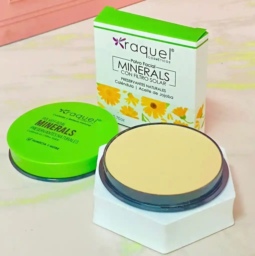 Tecnología mineral a base de trigo y avena, caléndula, filtro solar y aceite de jojoba. Cobertura alta. Producto sedoso con alto contenido de suaves minerales que evitan la obstrucción de los poros de la piel. El polvo compacto mineral con caléndula, se destaca principalmente el extracto natural de caléndula, conocido ampliamente por su capacidad astrigente, haciéndolo excelente para la piel con tendencia a desarrollar acné. También contiene extractos de avena, trigo y aceite de jojoba que brindad humectación y nutren la piel. Para piel grasa o mixta.