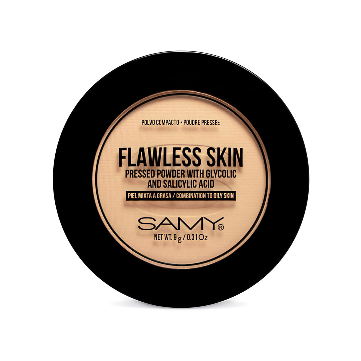 Polvo compacto para pieles mixtas con tendencia a grasa, con ácido glicólico y ácido salicílico, además de una textura micropulverizada, muy suave y con un acabado mate. Posee dos filtros físicos, Dióxido de Titanio y Óxido de Zinc, que ayudan a proteger la piel de la radiación solar. Modo de uso: Aplique el producto con ayuda del pomo, cubriendo uniformemente la piel del rostro. Realizar el paso anterior las veces que considere según la intensidad que desee en el rostro. RECOMENDACIONES DE USO: No aplicar sobre la piel infectada, irritada o dañada. Producto para uso exclusivamente personal. No comparta su producto ni le añada nada, úselo en forma higiénica, asegúrese que la tapa este bien cerrada. Descontinúe su uso si nota cambios en la apariencia o nota alguna reacción alérgica. Evite contacto con los ojos, de lo contrario, enjuagar con agua. Este no es un protector solar, ofrece protección solar como beneficio secundario. Mantener fuera del alcance de los niños Beneficios: Polvo compacto con acabado mate. Ayuda a cubrir imperfecciones. Su aplicación puede ser en mujeres y hombres. Absorbe la grasa facial. Fórmula libre de parabenos. Contiene ácido salicílico y ácido Glicólico. Ingredientes: TALC, KAOLIN, CALCIUM CARBONATE, SODIUM POTASSIUM ALUMINUM SILICATE, ETHYLHEXYL METHOXYCINNAMATE, OCTYLDODECYL STEAROYL STEARATE, ZINC OXIDE, SILICA, PHENOXYETHANOL, SALICYLIC ACID, GLYCOLIC ACID, CAPRYLYL GLYCOL, AQUA, DIPROPYLENE GLYCOL, GLYCERYL CAPRYLATE, CI 77891, CI 77491, CI 77492, CI 77499. Registro sanitario: NSOC99273-20CO
