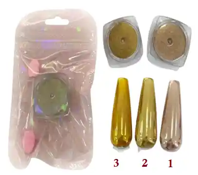 Polvo De Uñas Efecto Espejo - Dorados, por interno nos indicas la tonalidad de tu preferencia