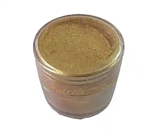 Polvo matizador comestible. Color dorado metalizado. Dale color a tus tortas, chocolates, masas y productos de repostería y pastelería. Tenemos una amplia variedad de polvos matizadores y brillantinas para darle vida a tus productos