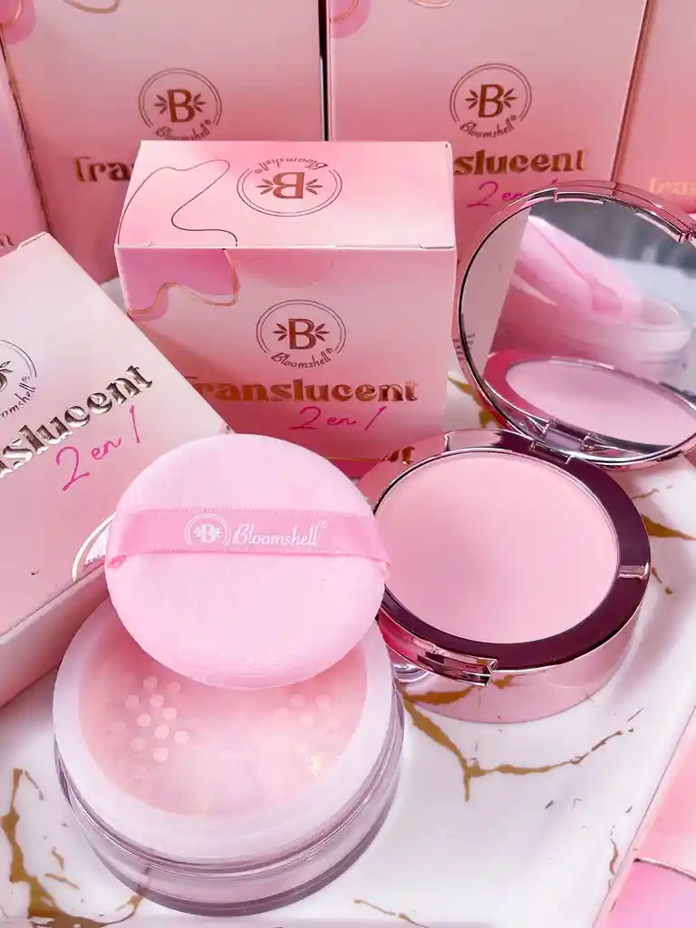 - Polvos 2 en 1 ultrafino de calidad profesional - Incluye 1 polvo compacto para mitificar y 1 polvo suelto para sellar - Efecto porcelana tamaño mediano - Incluye borla super suave para aplicarlo - Color rosado