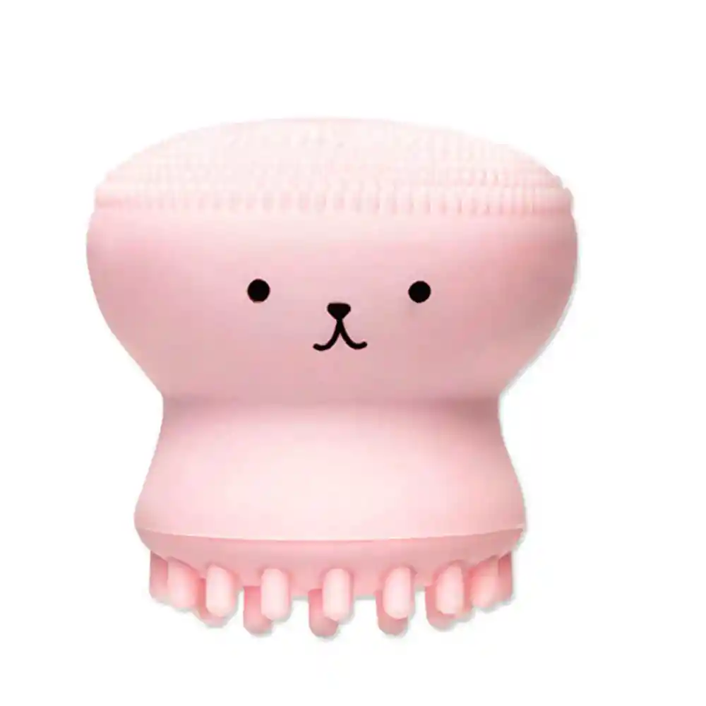 Pomo Cepillo Limpiador Facial Exfoliante En Silicona Pequeño Forma Pulpo Cepillo con doble función para una limpieza facial profunda y extra suave y un lado de silicona blanda con punteado para una limpieza profunda ideal para circulación sanguínea facial.
