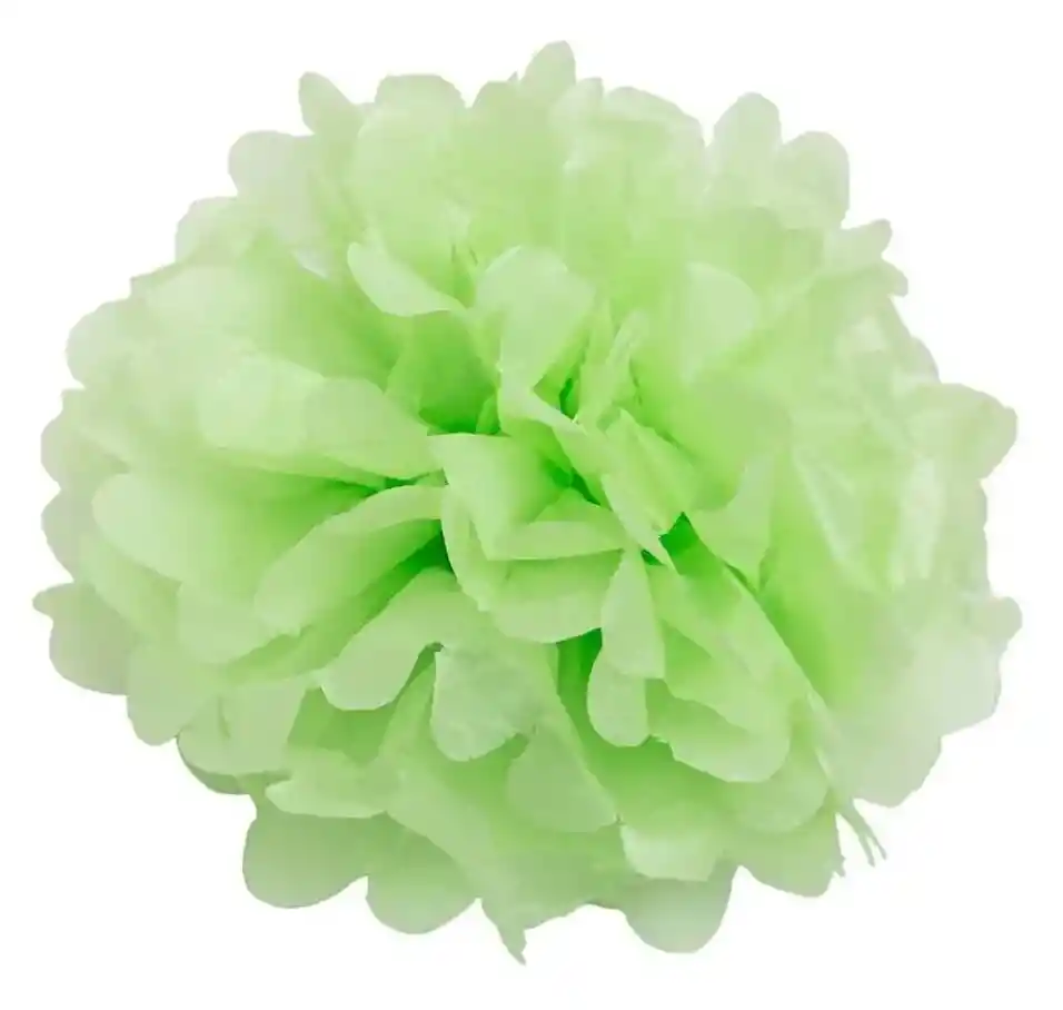 POMPON DE PAPEL SEDA PARA FIESTA 30 CM VERDE CLARO, SE ENVIA DESARMADO