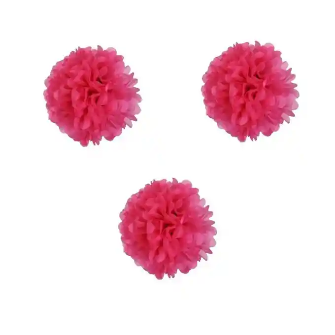 Pompones en papel seda fucsia Paquete x 3 unidades 40 cms. Fáciles de armar. Incluyen cinta para colgar no vienen armados